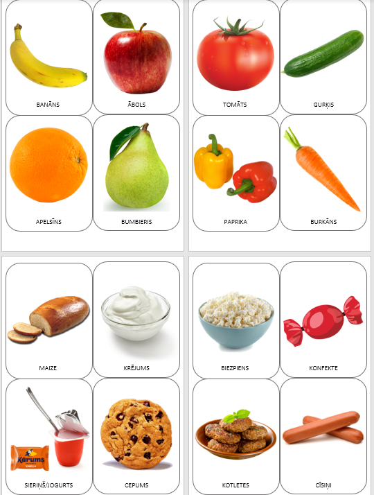 Materiāls vārdu krājuma papildināšanai. Tas izveidots par tēmu ēdiens/pārtika, jo apmierināt savu vajadzību pēc barības uzņemšanas ir ļoti svarīgi. Tādēļ to uzskatām par vienu no svarīgākajām vārdu krājuma grupām, ar kuru ir jāsāk papildināt bērnam vārdu krājums - gan aktīvais, gan pasīvais.